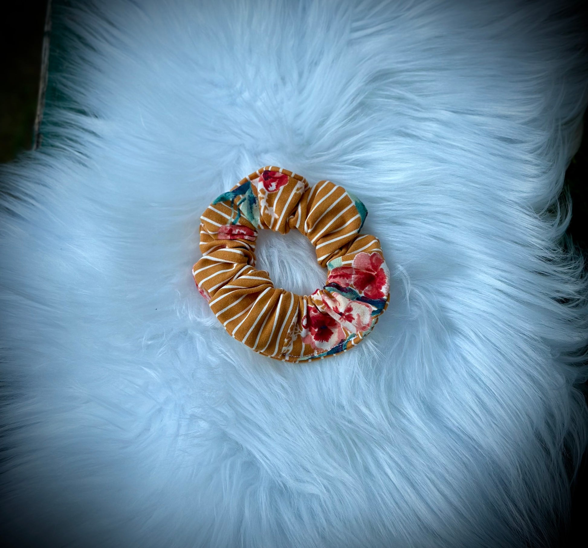 Mustard Floral Stripe Wraps & Scrunchies